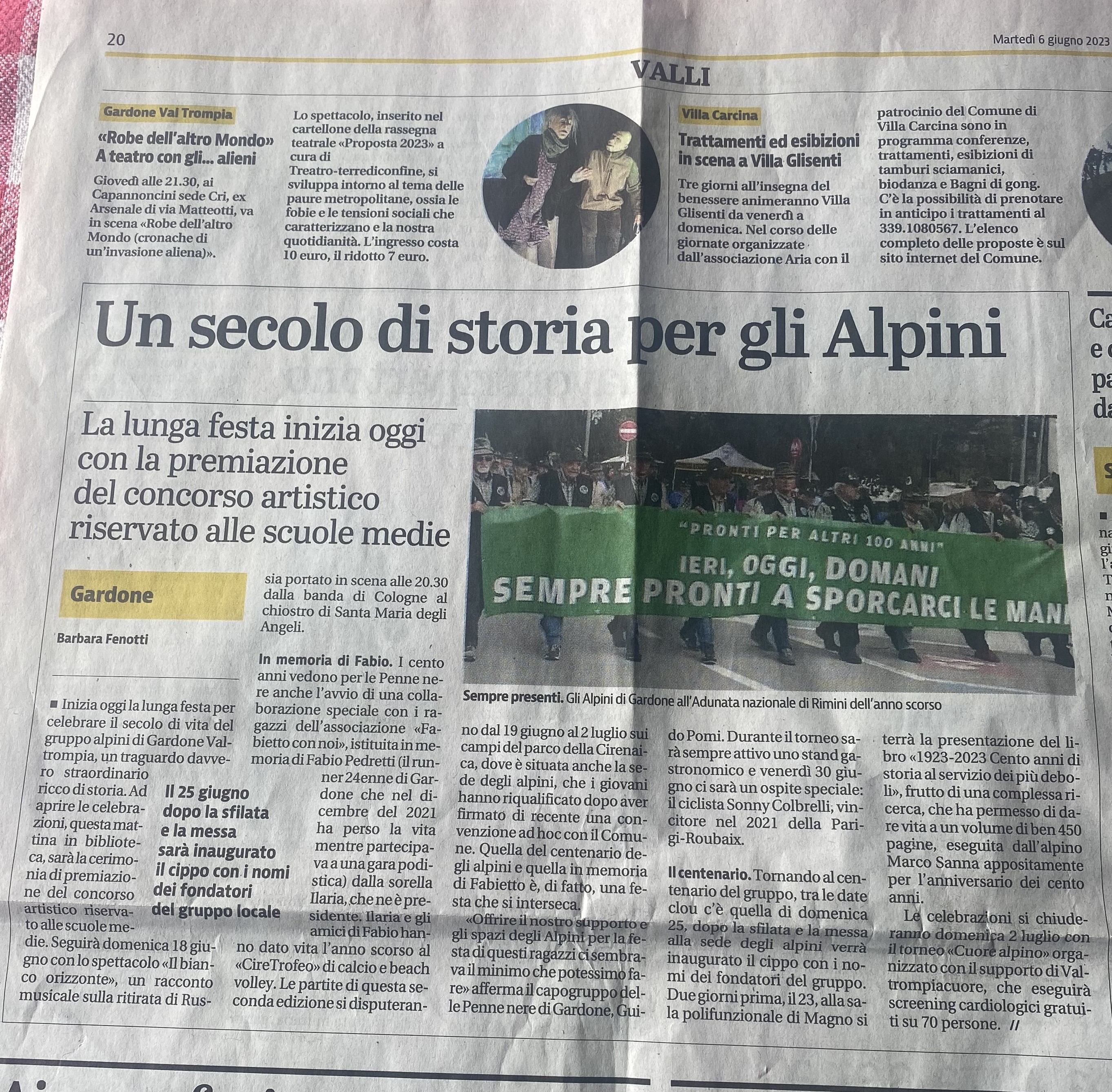 Celebrazione del primo centenario Gruppo Alpini di Gardone Val Trompia: riflessione e interpretazione sul tema della Pace: sponsorizzazione mostra artistica e premiazione studenti con i Grandi Classici, dodge balls e bussole per non perdere l’orientamento. La "cultura come cura" è uno degli ambiti tematici su cui si articola la "Capitale della Cultura Brescia-Bergamo 2023”: risponde Valtrompiacuore con i Fondi Sociali Solidali OR.MA e Mari Pier Luigi.