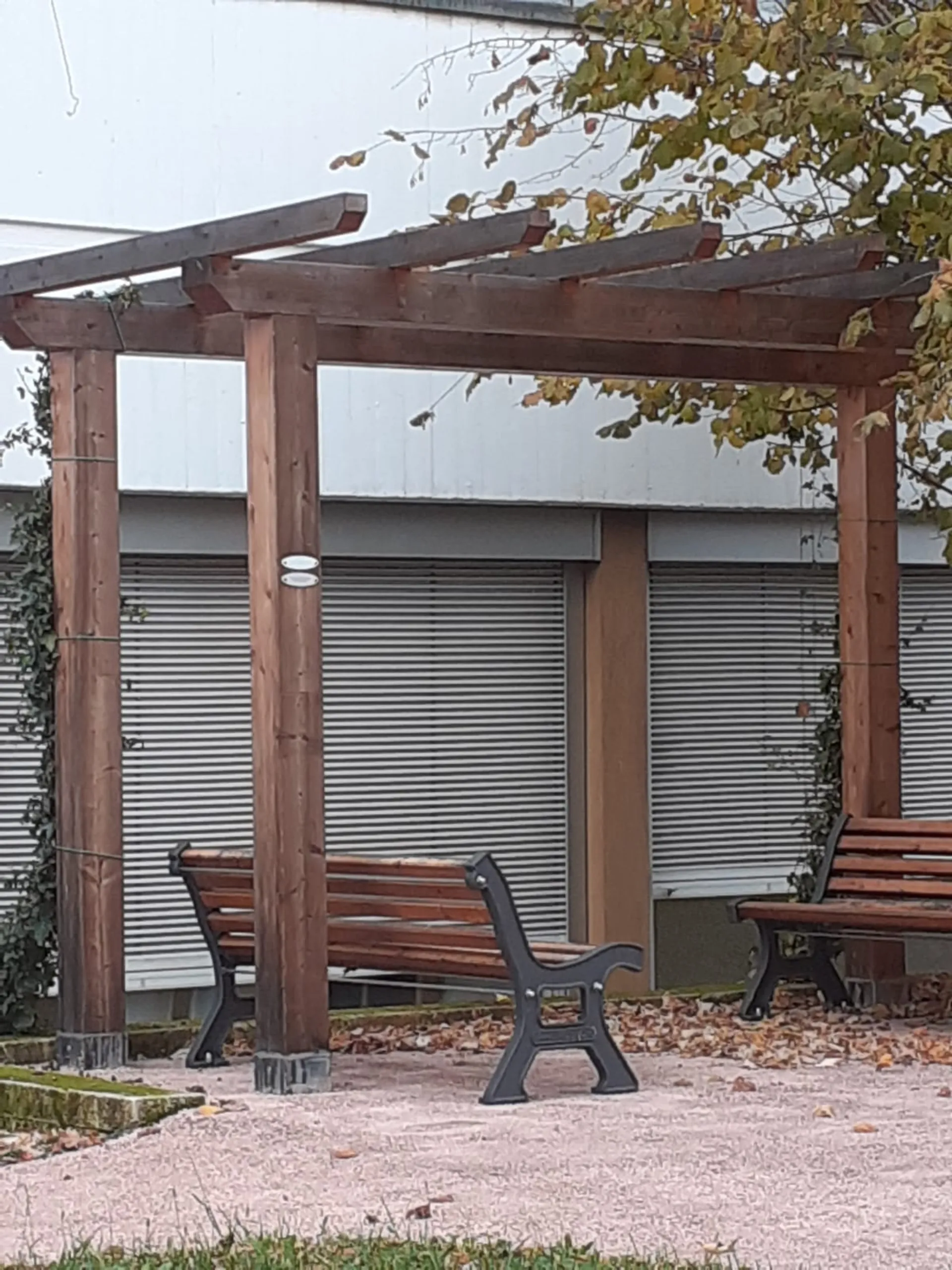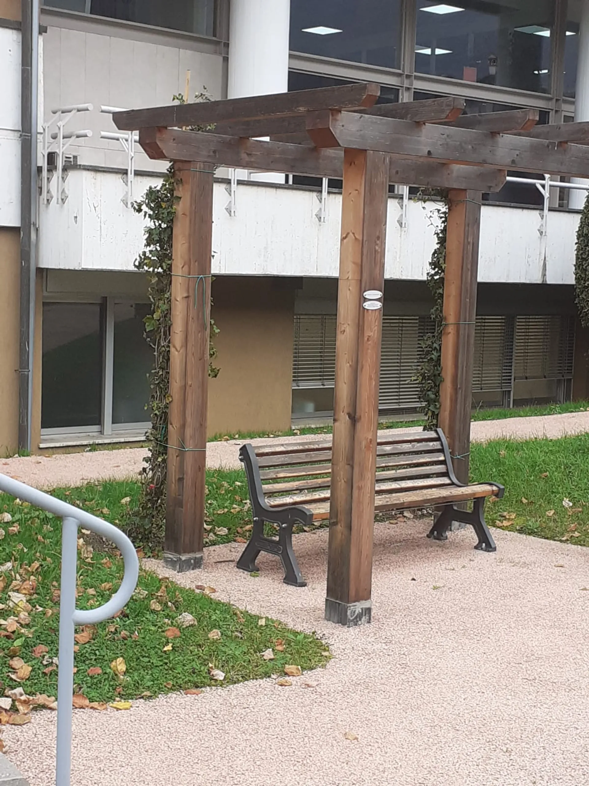 Rampicanti Percorso di Riabilitazione Abbiamo posato sei edere rampicanti, 2 contrapposte per pergola, a completamento delle tre aree di riposo del percorso di riabilitazione cardiologica e ortopedica. Percorso realizzato all’esterno del presidio ospedaliero di Gardone V.T.