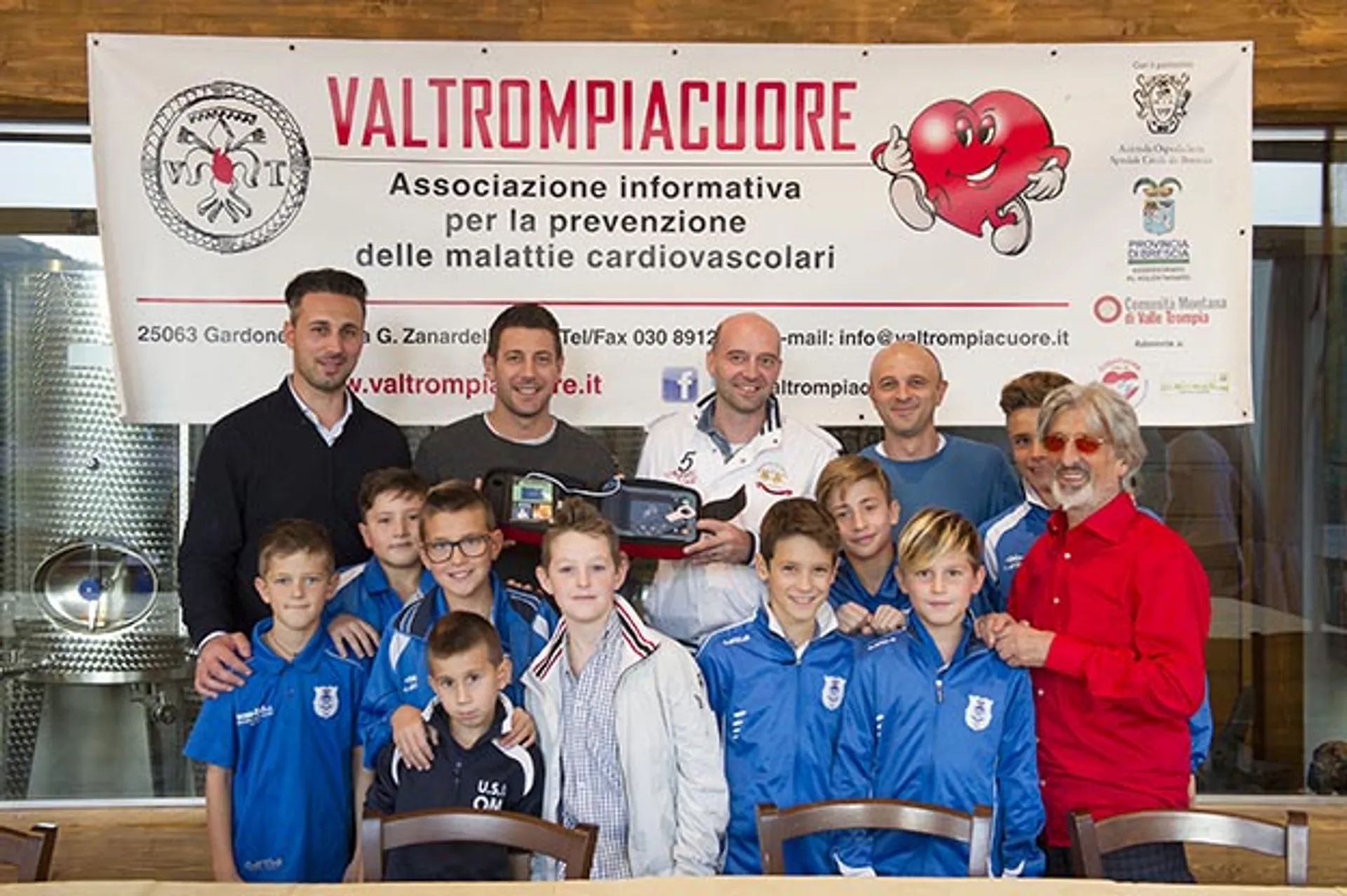 Donazione, grazie a un ampio concorso di sponsor, di un defibrillatore ciascuno all’Oratorio di Lumezzane S. Sebastiano, all’Oratorio di Brozzo di Marcheno, alla Società Sportiva Calcio di Ome, alla Società Sportiva Cirenaica di Gardone Val Trompia, alla Società Sportiva Pallavolo Gardonese di Gardone Val Trompia, alla Società Sportiva Pallacanestro Gardonese di Gardone Val Trompia e alla Protezione Civile Cinofila di Brescia; di una coppia di defibrillatori al Comune di Villa Carcina, alla Società Sportiva Calcio di Collio, alla Società Sportiva di Brione, alla Polisportiva Gardonese di Gardone Val Trompia, alla Società Sportiva Pallacanestro Robur et Fides di Gardone Val Trompia e alla Società Rugby di Lumezzane.