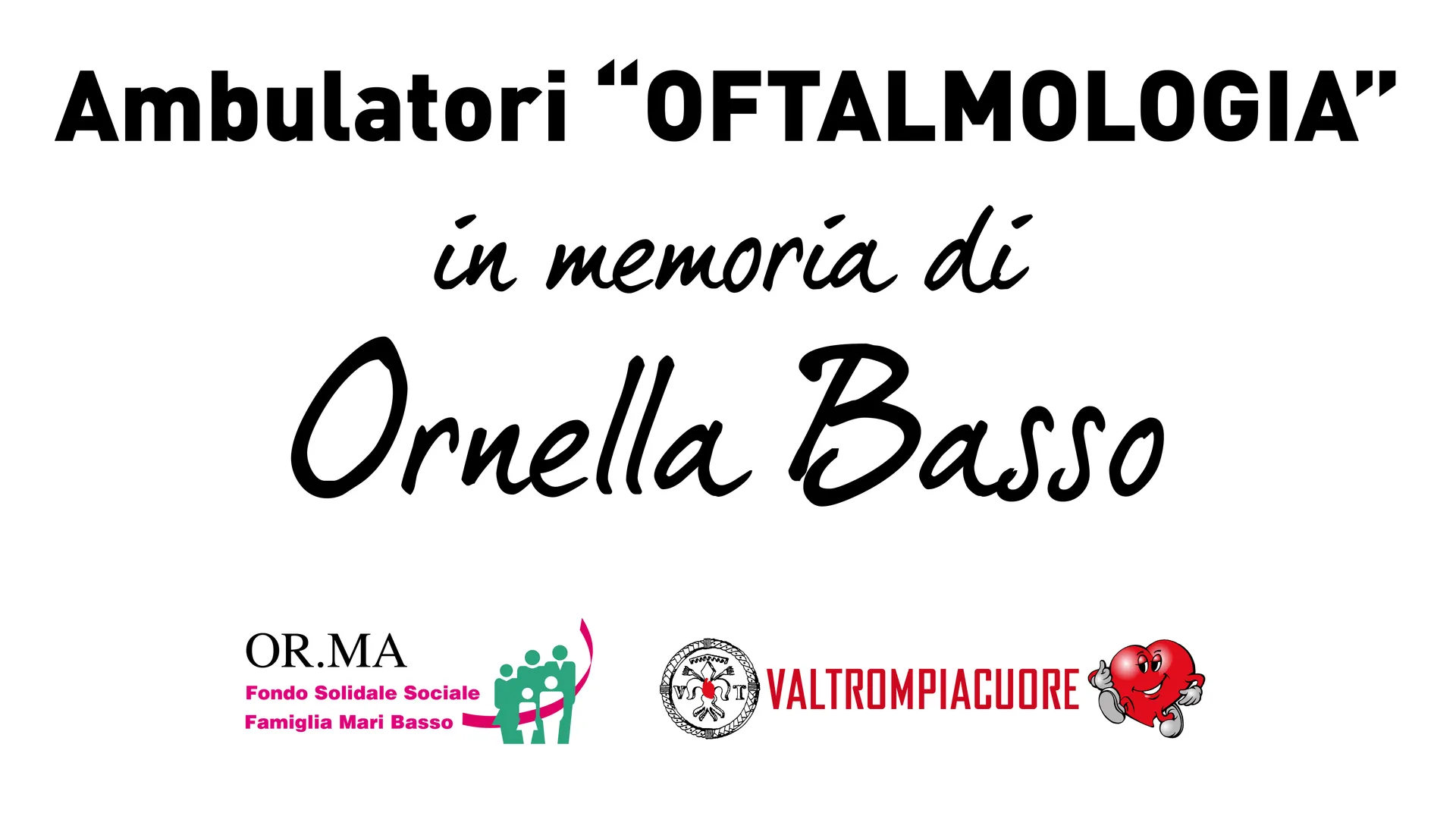 A completamento del progetto d’implementazione delle prestazioni Oftalmologiche del Reparto diretto dal Prof. Francesco Semeraro presso l’ASST Spedali Civili di Brescia, donazione dell’apparecchiatura Laser a Duplicazione per la Fotocoagulazione e la Fotostimolazione Retinica. In coerenza a questo provvedimento l’Associazione Valtrompiacuore e OR.MA Fondo Solidale Sociale Famiglia Mari Basso ottengono presso il Presidio Ospedaliero di Gardone Val Trompia l’avvio del servizio oftalmologico, da essi promosso e fermamente voluto, specializzato nella chirurgia della cataratta. Tale servizio ospedaliero, che finalmente permette di evitare le disagevoli trasferte di tanti pazienti triumplini in altri presidi e ambulatori, è dedicato alla memoria di Ornella Basso.
