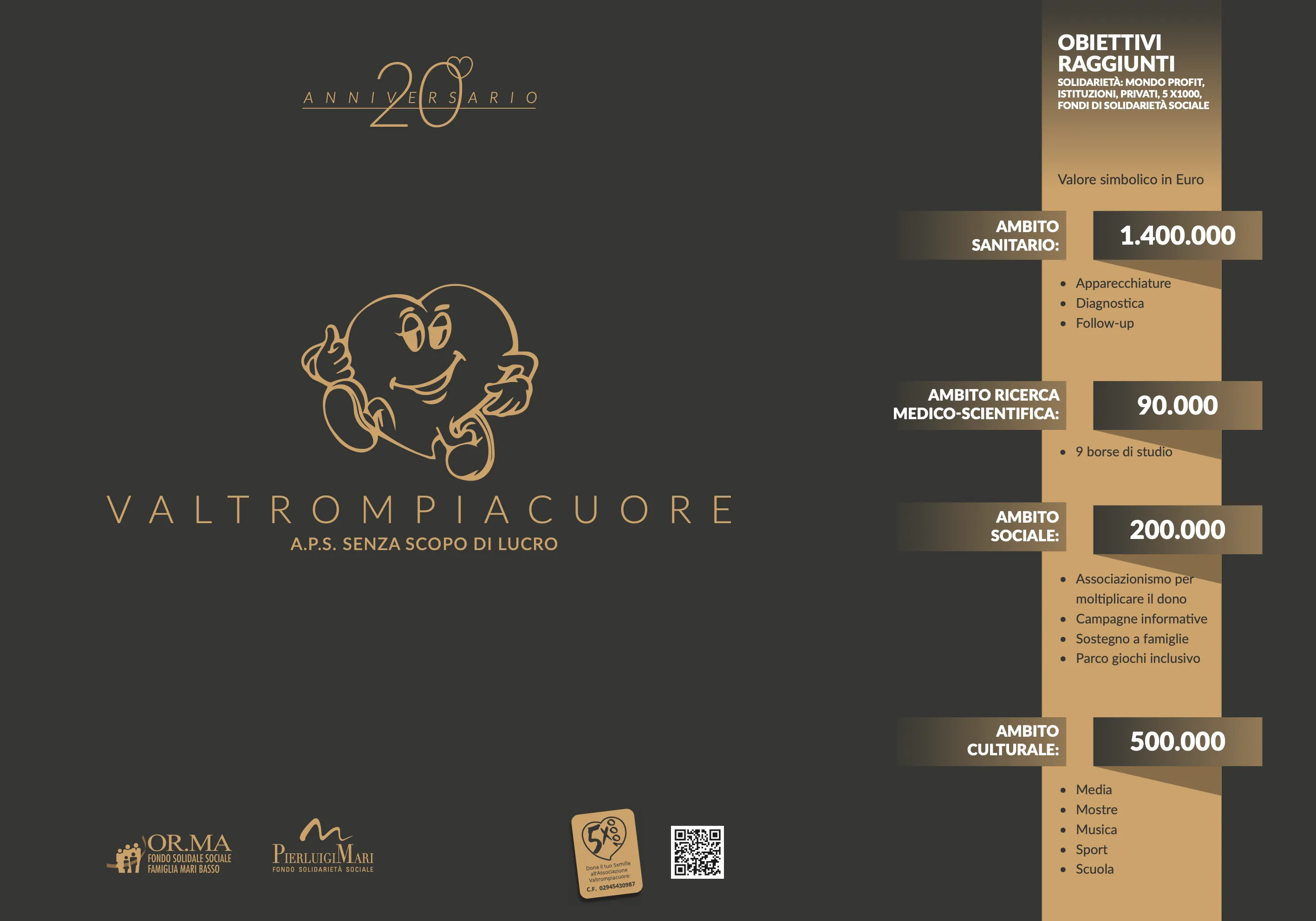 - 2016 — Costituzione "OR.MA" Fondo Solidale Sociale famiglia Mari-Basso presso Fondazione della Comunità Bresciana, a sostegno di Valtrompiacuore;